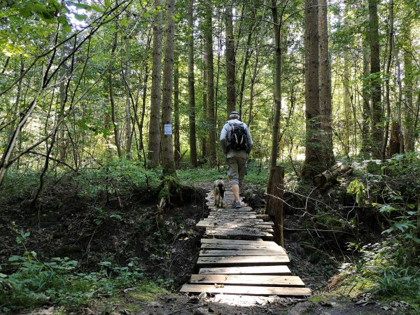 Über diese Brücke queren wir die Windach - und wandern nun, vom Fluss entfernt, durch den Wald.