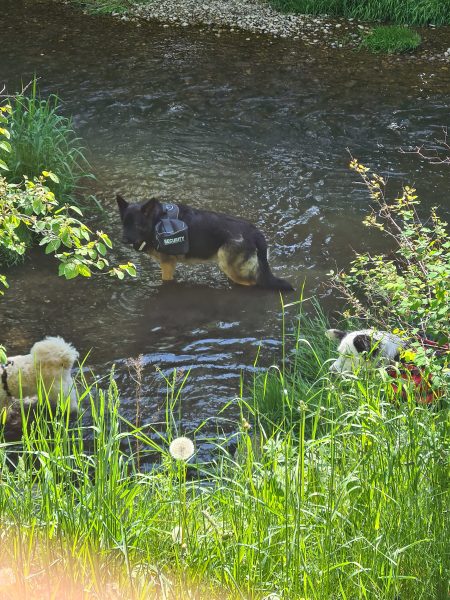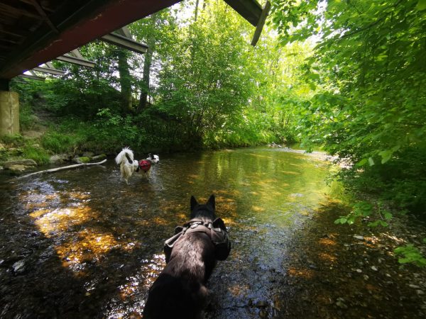 Unterwegs kommt man an genug Bächen und Flüßen vorbei an den die Hunde trinken können.