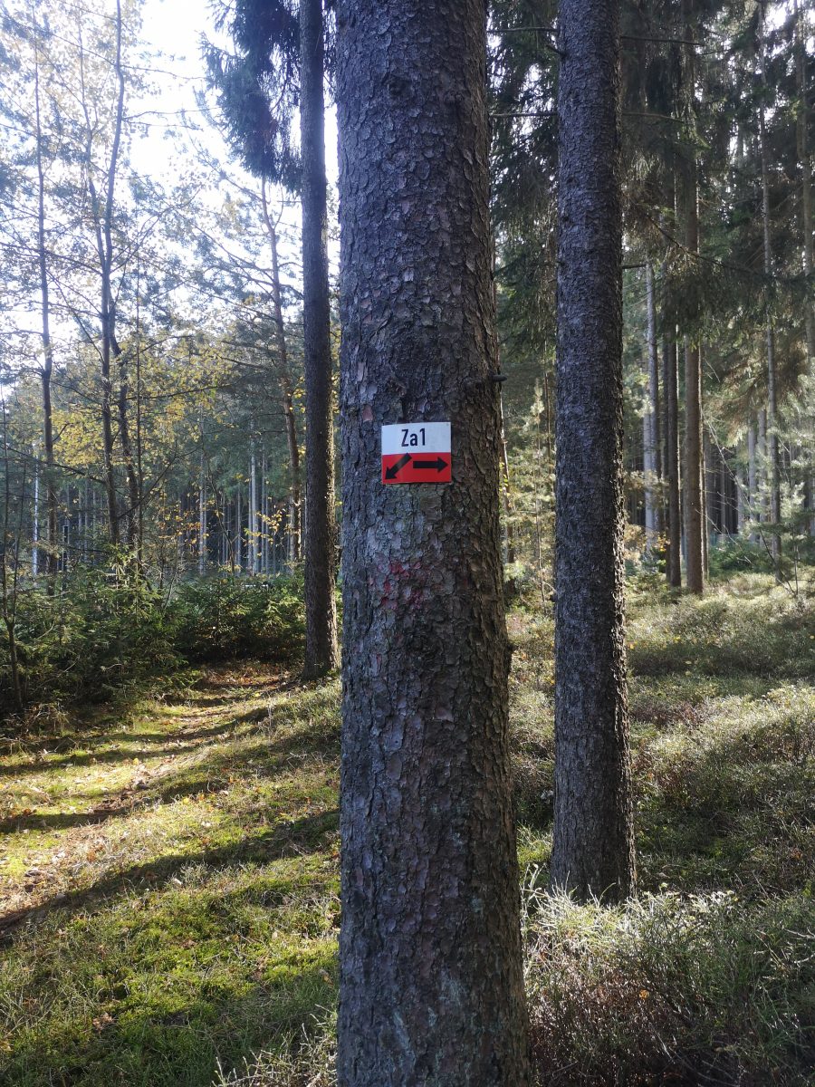 Wir starten in der Ortsmitte von Zandt und folgen vom Rathausplatz der rot-weißen Beschilderung mit der Za1. Am Sportplatz vorbei führt uns unser Weg in einen märchenhaften Wald. Der Boden ist dicht mit Moos und Farnen bewachsen, links und rechts des Weges sprießen zahlreiche Pilze.