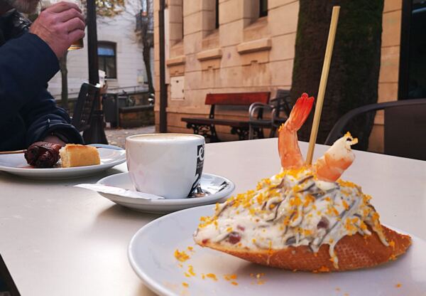 Neben dem Sportstrand mit Pavillon und WC-Häuschen wechseln wir auf die Promenade und biegen schließlich ab Richtung Stadt. Über die Straßen Seitximeneta Kale, Gipuzkoa Kalea und Kale Nagusia erreichen wir schließlich die Musika Plaza mit dem Musikpavillon, das Zentrum der Altstadt. Wir lassen uns durch die Gassen treiben, gönnen uns in der Sakana taberna (Zigordia Kalea, 35) Kaffee und Pinxos. Dann geht es zurück.