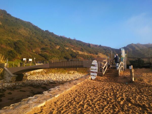 Zu den schönsten Orten an der baskischen Küste gehört das traditionsreiche Seebad Zarautz. Der international beliebte Surfspot punktet nicht nur mit dem längsten Sandstrand im Baskenland (2,5 km) und einer schönen, lebendigen Altstadt. Auch die umliegende Natur hat uns begeistert. Zum Beispiel das Biotop von Inurritza im Norden der Bucht. Hier, wo der Fluss „Ria Iñurritza“ ins Meer mündet, liegt ein weitläufiges Dünenfeld, begrenzt von einer imposanten Steilküste. Die lässt sich über Stufen im Felsen erklimmen – und belohnt uns mit wunderbaren Ausblicken über die Stadt, die Bucht, die Steilküste und auf das Inselchen Mollarri. Auf dem Eiland liegt Malla Harria, ein historischer Umschlagplatz von Eisen und anderen Mineralien aus den Bergwerken der Umgebung. Reste der imposanten Anlage lassen sich mit Hund und Wahnsinnsblick erkunden.