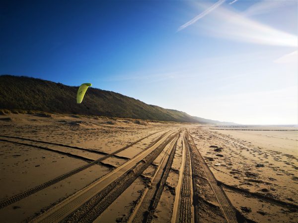 Traumhaft auch für Paraglider. Diese Jungs sind eine gute Stunde in der Luft geblieben, immer am Dünenkamm entlang.