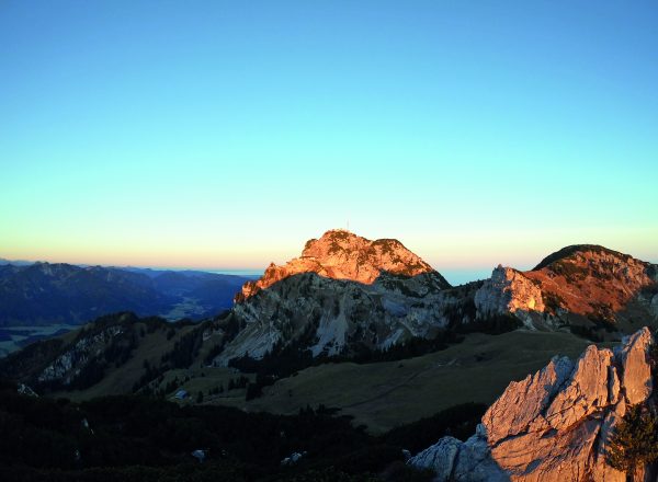 Wenn in Frühling und Herbst die Tage (noch) kurz sind, sollte man jeden Sonnenstrahl mitnehmen – auch wenn man mal sehr, sehr früh aus Betten und Körbchen steigen muss. Diese Tour ist es wert. Sie führt uns vom Unteren Sudelfeld über die Lacheralm zur Lacherspitze und belohnt uns mit einem traumhaften Sonnenaufgang über den Gipfeln des Mangfallgebirges. Der Wendelstein zum Greifen nah. Wanderpfade und befestigte Wege, die auch im Dunklen gut zu bewältigen sind, wechseln sich ab. Stirnlampen und Leuchthalsbänder mitnehmen! Unvergesslich an einem klaren Tag.