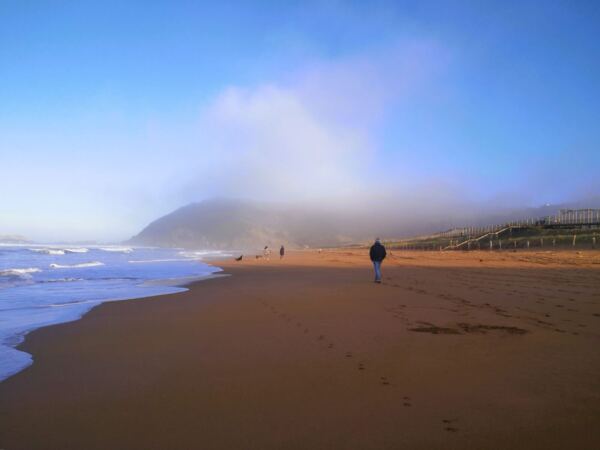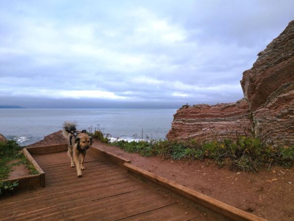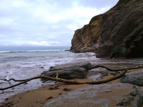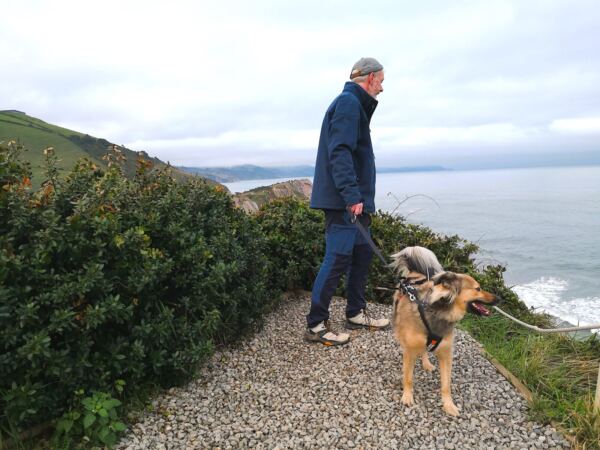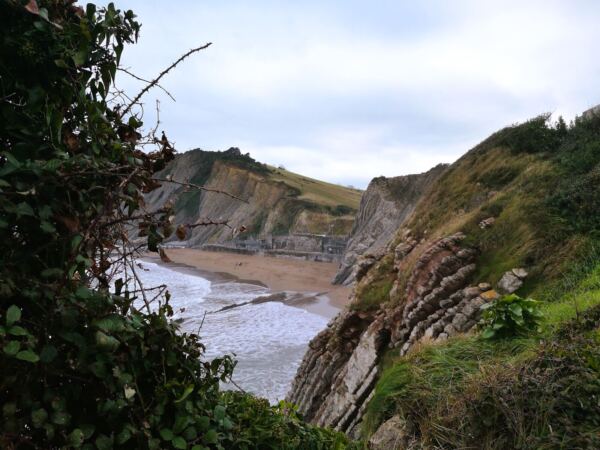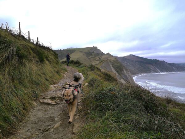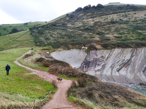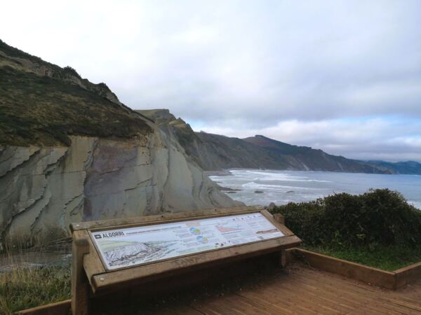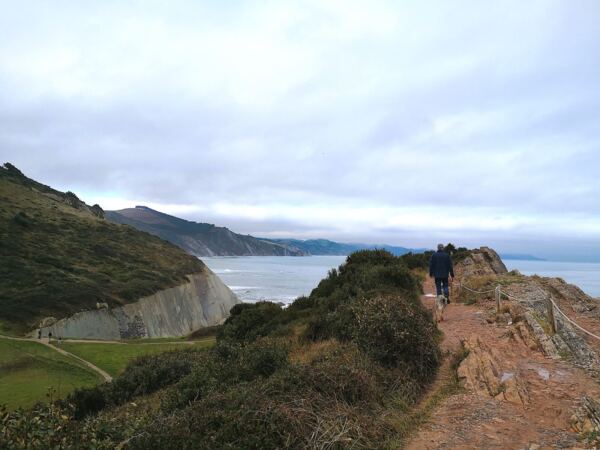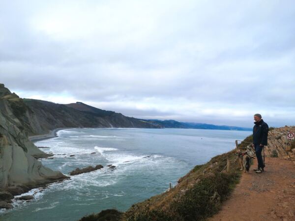 Westlich von San Sebastián an der baskischen Küste liegt die Stadt Zumaia an der Mündung des Urola in den Golf von Biskaya. Der lebendige Ort mit seiner teils historischen Altstadt, dem großen Hafen und der Werft ist ein beliebter Ausgangspunkt für Wanderungen entlang des Flysch. Geolog*innen verstehen darunter eine besondere Art von Sedimentgestein, das oft an den Rändern von Kontinentalplatten entsteht. Beim Transport von Sedimenten aus höheren Lagen in tiefere Meeresbecken bilden sich im Verlauf von Millionen von Jahren wechselnde Schichten von Sandstein, Mergel und Tonstein, die farblich gut zu unterscheiden sind. Der Flysch in Zumaia ist etwas ganz besonders: Hier sind die Schichten außergewöhnlich gut und detailgenau zu sehen. Kundige können daran Klimaveränderungen, tektonische Verschiebungen und mehr ablesen. Aber auch Unkundige wie wir begeistert und fasziniert dieses Bilderbuch der Erdgeschichte. Unserem Hund hat diese Panorama-Wanderung auch sehr gut gefallen. Was an den tollen Ausblicken aufs Meer und den schmalen Pfaden liegt. Und an der großen Freiheit. Auf dem Weg gilt keine Leinenpflicht, solange der Hund im Einflussbereich seiner Leute bleibt. Ein Schild weist extra daraufhin.