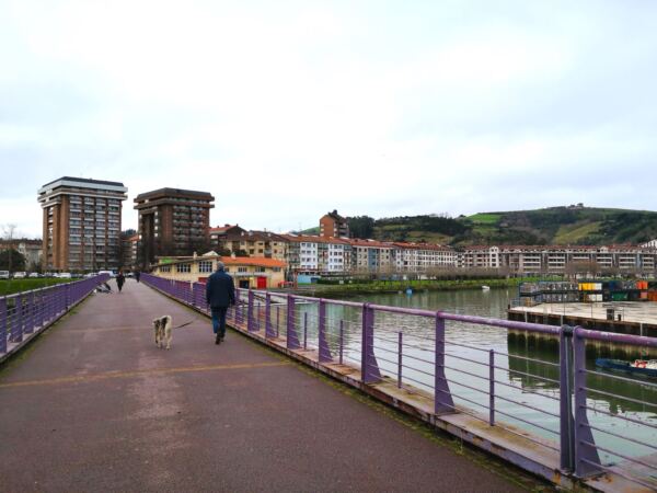 Über die Brücke über den Fluss Urola, der in Zumaia ins Meer mündet.