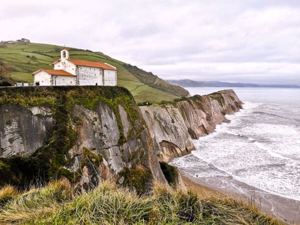 Was für eine Postkarten-Kulisse: die Kapelle San Telmo Ermita am Flysch.