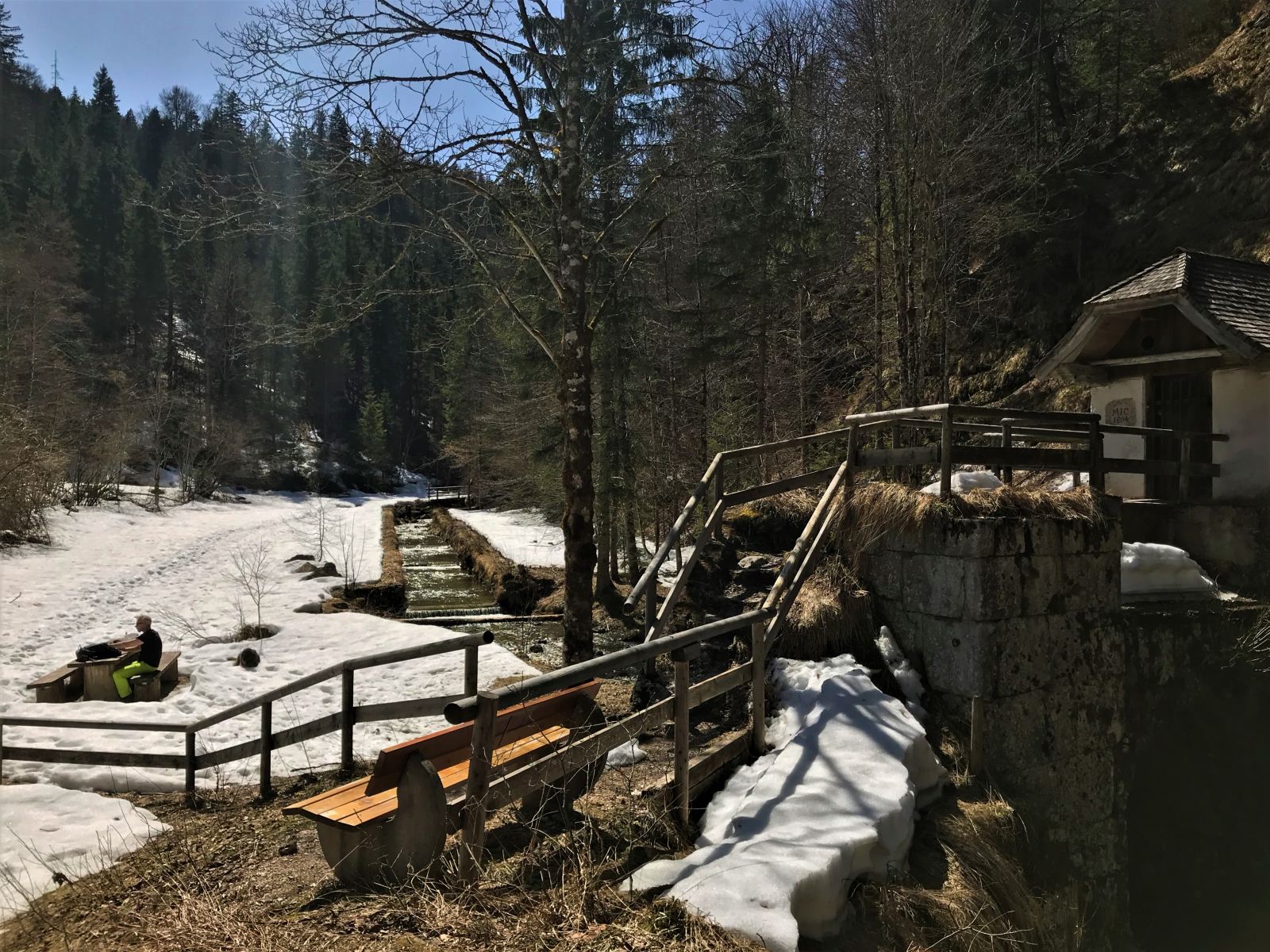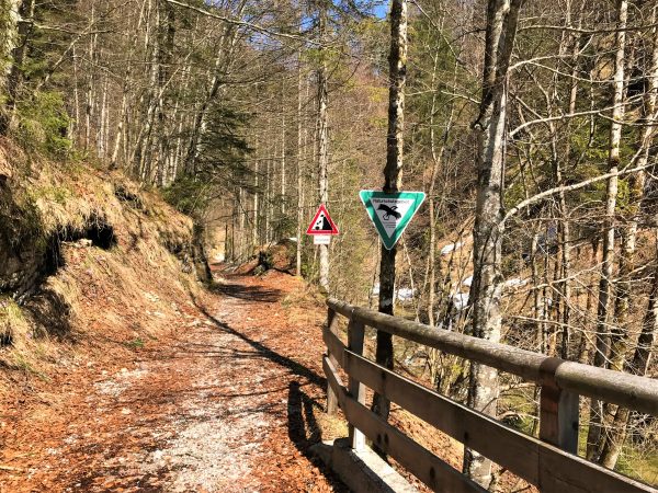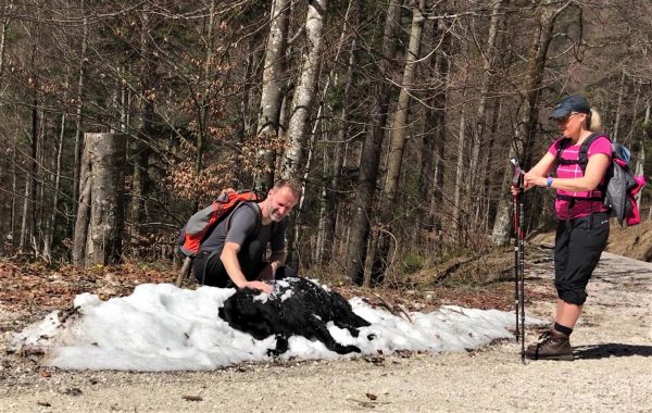 Geht es oder geht es nicht? Wenn auch in tieferen Lagen noch Schneereste liegen, aber die Frühlingssonne schon die ersten Blüten herauslockt, kann man nicht sicher sein, ob die Wanderwege im Alpenvorland – mit Hund, ohne Schneeschuhe – schon begehbar sind. Diese Tour vom Parkplatz Reiterbrücke am Weißbach nahe Inzell bis zur Bäckinger Klause und weiter zur Harbachalm (bewirtschaftet von Mai bis Oktober) bietet immer zwei Optionen: den idyllischen Wanderweg entlang des Bachs und die Winter-Alternative auf der befestigten Forststraße. Beides gefällt Hund und Mensch und bietet einen Picknick-Platz auf historischem Boden. Mehr Informationen zur Region findest du hier