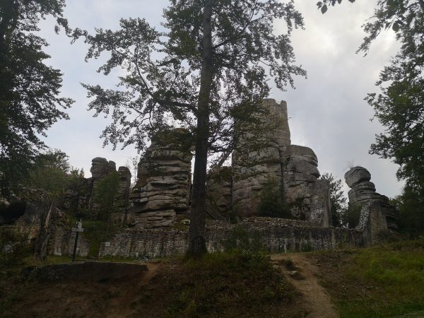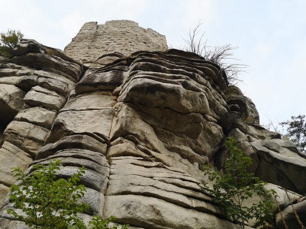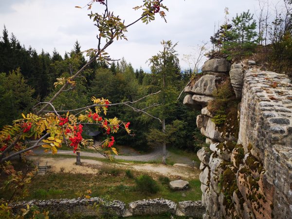 Auf 864 m stehen wir plötzlich vor der imposanten Ruine Weißenstein. Die Burg liegt in einer Gesteinsformation, die in das Gebäude mit eingebaut wurden.