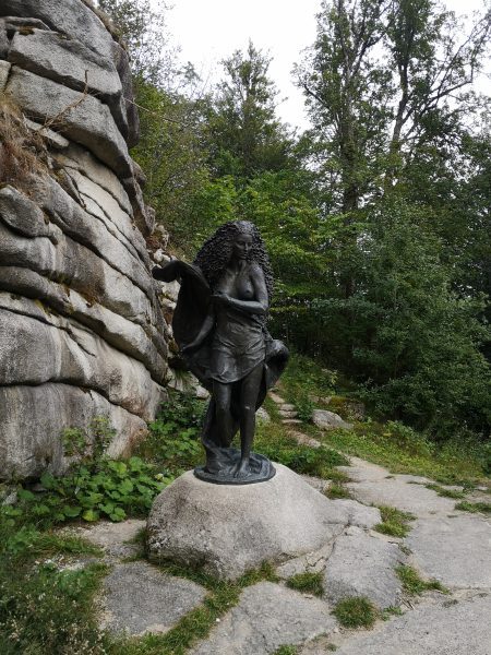 Hinter dem Gebäude trifft man auf eine lebensgroße Bronzeplastik. Diese wurde 2009 hier aufgestellt, als Denkmal für Mutter Erde.