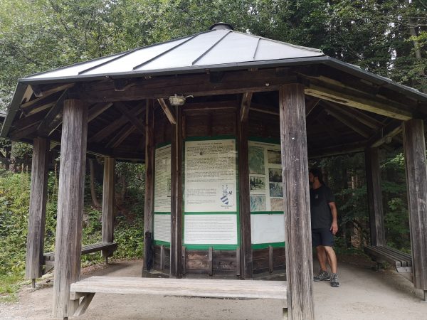 Ggeenüber der Burg steht ein Pavillon mit Infotafeln zur Geschichte der Burg.