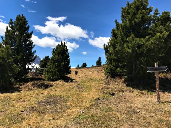 Der Naturpark Puez-Geisler in den Dolomiten lebt von seinen Kontrasten: Hier gewaltige, grau-gezackte Gebirgstöcke mit steilen Abrisskanten, dort weich gewellte Wiesen mit zarten, oft seltenen Blumen. Diese kleine Tour bietet immer beides – und hin und wieder kühle Pfoten und einen guten Schluck aus einem klaren Bach. Die weitgehend schattenlose Strecke startet am sehr beliebten Hotel und Gasthof Ütia de Börz am Würzjoch (Passo delle Erbe) und führt mäßig steigend vorbei am Biotop Würzjochmoos zum Monte Costaces (2.120 Meter). Wer hin und wieder den Kopf wendet, verliert die alles überragende Peitlerkofel Gruppe nie aus dem Blick. Mehr Infos zum Urlaub mit Hund und Kind in der Dolomiten-Region um St. Vigil (San Vigilio di Marebbe) findest du hier.