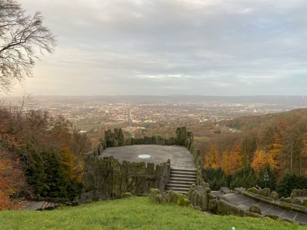 Durch den Wald erreichen wir den Bilstein und nach einem kurzen, aber steilen Aufstieg einen Rastplatz. Ein perfekter Ort für ein Picknick mit bester Aussicht über Besse bis weit in die Söhre.