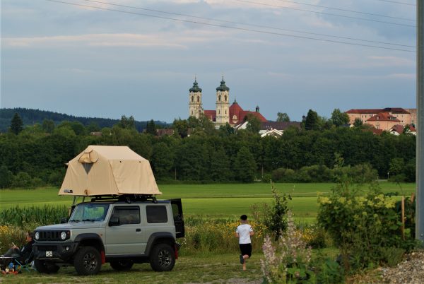 Im Unterallgäu mit Blick auf die berühmte Benediktinerabtei haben Sabine und Clemens Vollmar ein Paradies für Camper mit Hund geschaffen. Der Platz liegt auf einem kleinen Plateau mit wunderschönem Panorama und kompletter Sonnenlage auf jedem Stellplatz.