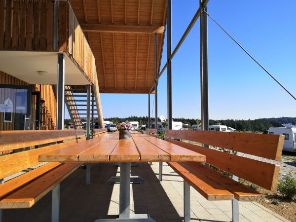 Sonnenbeschienener Platz mit Schotterrasen und tollem Panorama. 85 Stellplätze mit Wasser, Abwasser und Strom, jeweils etwa 100 m2 groß. Nagelneue Sanitäranlagen, durchdachtes ökologisches Konzept. Sehr sympathische und engagierte Betreiber, die dir gerne auch Wanderungen und Sehenswürdigkeiten empfehlen. Brötchenservice, gekühlte Getränke und Kaffeevollautomaten in der Rezeption. Überdachte Sitzgruppe für gemeinsame Geselligkeit.