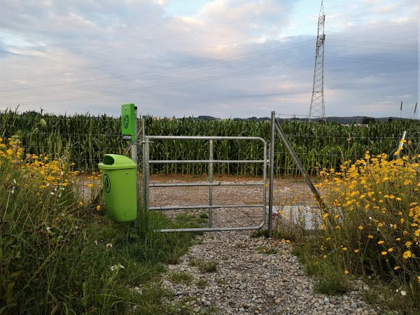Für die kleine Runde morgens oder abends gehst du nur zum unteren Tor raus und stehst direkt am Feldrand. Der Weg führt einmal großzügig um den Platz und ist insgesamt etwa 900 Meter lang.