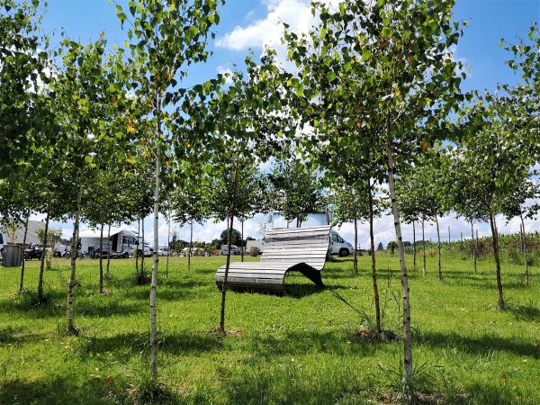 Jeder der 85 Stellplätze hat eigene Versorgung mit Wasser, Abwasser und Strom. Brötchenservice, Kaffeeautomat und kalte Getränke in der Rezeption sind weitere Teile des Wohlfühlpakets. Neben zwei Waschmaschinen gibt es eine Induktionskochplatte, wichtig für diejenigen, die nur mit Zelt unterwegs sind. Direkt vor der Rezeption stehen gemütliche Bänke und Tische, wer mag kommt hier schnell mit anderen ins Gespräch.