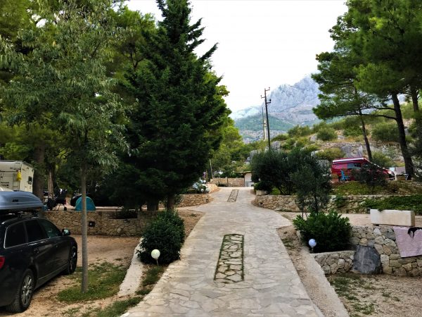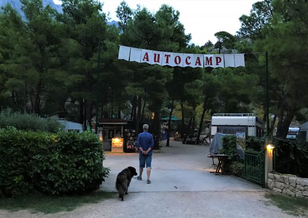 Das Autocamp liegt an der Makarska Riviera. Ein Küstenstreifen wie aus dem Bilderbuch: smaragdgrünes Wasser, weiße Kieselstrände, verwunschene Buchten, darüber das imposante Biokovo-Gebirge, das wie ein natürlicher Schutzwall zwischen Meer und Hinterland aufragt. Wer wie wir abseits der Touristenströme nach einem ruhigen, ursprünglichen Platz mit Hund sucht, ist hier an der richtigen Adresse.