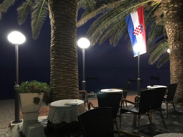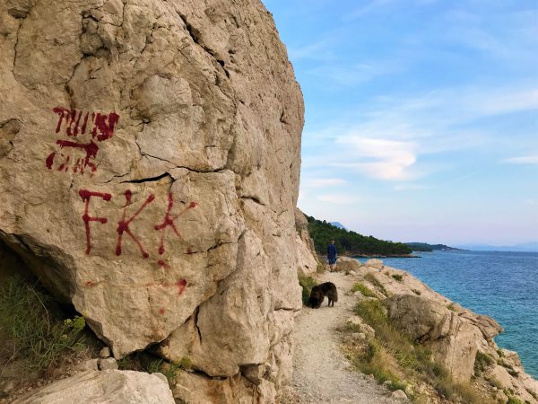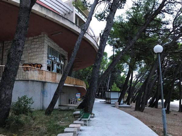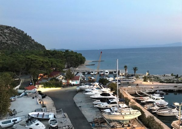 Krvavica ist einer dieser Orte, die man leicht übersehen kann – und genau das macht ihn so besonders. Eingebettet zwischen duftenden Kiefernwäldern, geschützt vor den Winden durch die steil aufragenden Felsen des Biokovo-Gebirges. Es gibt hier einige Hotels und eine kleine Marina. Diese liegt rund drei Minuten zu Fuß vom Autocamp entfernt. Auf dem Weg zum Hundestrand kommt ihr vorbei. Ihr findet hier ein Restaurant, in der Hauptsaison auch kleine Kioske. Wer sich über das seltsame und leider verwahrloste Gebäude neben der Marina wundert: Das war einst ein Erholungsheim für Kinder. In den Wirren des Balkankriegs sind hier offensichtlich die Zuständigkeiten verloren gegangen. Das architektonisch reizvolle Objekt stand bei unserem letzten Besuch leer und war Opfer von Vandalismus geworden.