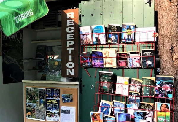 Sie ist in einem gepimpten Wohnwagen untergebracht. Hier findet ihr auch Bücher und Zeitschriften in unterschiedlichen Sprachen zum Mitnehmen.
