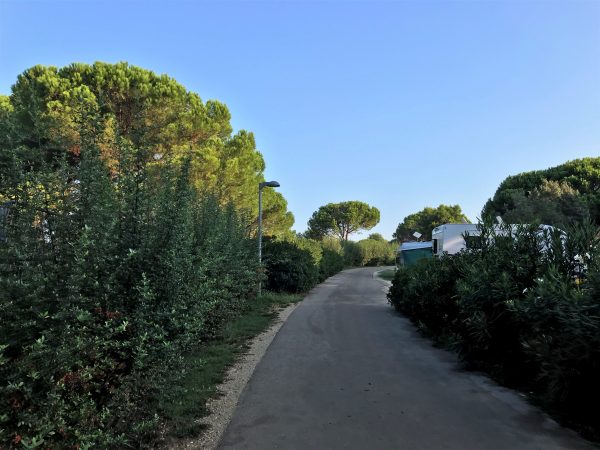 Große Anlage mit über 1.000 Stellplätzen, eingebettet in ein Ressort mit Ferienwohnungen, Pools und Mobilheimen. Stellplatzgröße: zwischen 80 und 120 qm. Bei voller Belegung kommt man der Nachbarschaft auf den kleinen Stellplätzen recht nah, das muss dein Hund mögen.