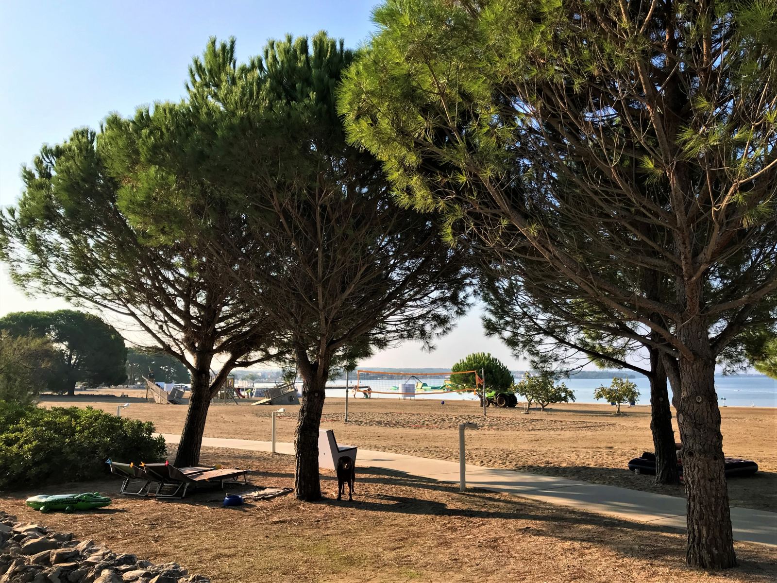 Die besonders beliebten Stellplätze direkt am Meer sind mit rund 80 qm recht klein. Wer einen Hund hat, der sich durch direkte Nachbarschaft – mit vier oder mit zwei Beinen – gestört fühlt, ist hier nicht so gut aufgehoben. Mit unserer sehr hundefreundlichen und gegenüber Menschen sehr schüchternen Hanni hatten wir überhaupt keine Probleme. Nur Liebe. Der Nachbarshund ist an seiner Leine immer wieder so nah wie möglich herangerobbt, um mit Hanni zu flirten. ️Was Hanni noch toller fand als den verliebten Nachbarn: den Baumschatten über unserem Stellplatz. Nach dem, was wir gesehen haben, bieten alle Plätze Schatten – ein großer Vorteil, wenn man wie wir hier im Sommer übernachtet.