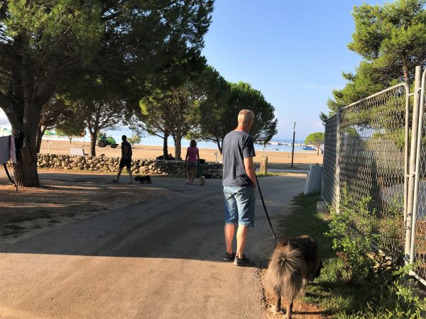 Was das Zaton Holiday Resort nach unserer Erfahrung mit Kroatien so besonders macht: der wilde Strand, der sich direkt an den kleinen Hundestrand des Resorts anschließt. Strand bedeutet hier tatsächlich, was man sich darunter vorstellt. Heißt: Er ist ein SANDstrand, an Kroatiens Kiesel- und Felsstränden eine absolute Ausnahmeerscheinung. Unsere Hanni und wir haben es jedes Mal genossen, am frühen Morgen vorbei am Volleyballfeld und der Segel- und Surfschule, die zum Resort gehört, zum Hundestrand zu laufen, uns dort am Zaun vorbeizudrücken (völlig problemlos möglich) und immer weiter zu traben, über Sandstrände, schilfbestandene Uferpfade und schließlich kreuz und quer durch die Felder zurück. Ein toller Gassi-Gang, um den Urlaubstag zu begrüßen. Spielfreudige Hunde treffen hier auch immer auf Kumpel zum Toben. Wer nah dran sein möchte am Hundestrand und wilden Strand, sollte sich einen Stellplatz in der Nähe des Waschhaus Nr. 5 sichern.