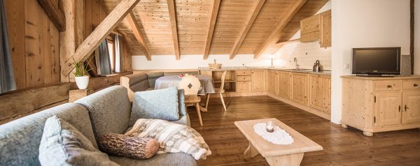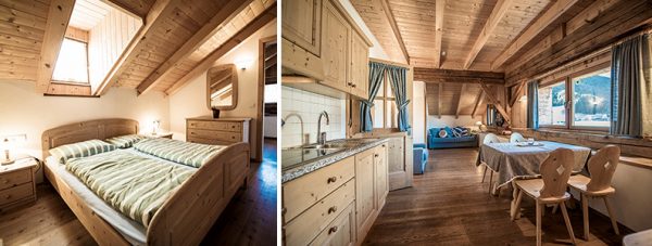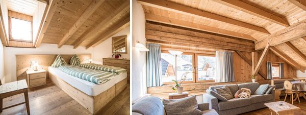 Das kleinere Appartement hat ein Schlafzimmer und ein Schlafsofa im Wohnzimmer, das etwas größere bietet zwei Schlafzimmer plus Schlafsofa. Beide sind liebevoll hergerichtet, beim Ausbau wurden vornehmlich natürliche Materialien verwendet. Was das Inhaberehepaar Uli und Roman bereits im Restaurant umsetzt, wird auch in den Appartements großgeschrieben: Einklang mit der Natur, Ruhe und Besinnung auf die wirklich wichtigen Dinge wie Genießen und Entspannen.