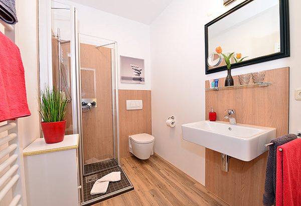 Die Wohnungen sind zwischen 40 und 100 m2 groß und für zwei bis fünf Personen ausgelegt. Zusätzlich sind in jeder Wohnung bis zu zwei Hunde erlaubt. Alle Wohnungen sind unglaublich hell und freundlich eingerichtet, in genau der richtigen Mischung zwischen modernem Design und Vorarlberger Gemütlichkeit. Großzügige moderne Bäder und voll ausgestatte Küchen runden den Eindruck ab. Alle Böden sind für Hundepfoten geeignet. Jede Wohnung hat einen eigenen umzäunten Garten. Die größere Wohnung erstreckt sich über zwei Etagen und lässt sich in drei verschiede Wohnvarianten aufteilen. Sie hat zusätzlich noch einen Balkon. Flatscreens, Kaffeemaschinen, Mikrowelle, Eierkocher, W-Lan, Haartrockner, bei der Ausstattung haben Sabine und Helmut an alles gedacht, was den Urlaub zusätzlich entspannt. Dazu gehört auch, dass du weder Näpfe noch Hundekissen mitnehmen musst, das steht auf Wunsch bei Anreise schon für dich bereit. Genauso wie Hundehandtücher und eine Erstausstattung mit Servietten, Salz, Pfeffer, Essig, Öl usw. Und nach Absprache bekommst du deinen ersten Einkauf schon in den Kühlschrank gestellt, du kannst dich nach einer langen Anreise sofort zurücklehnen und entspannen.