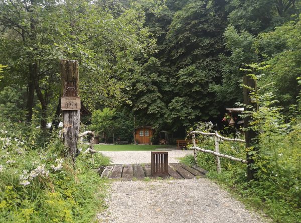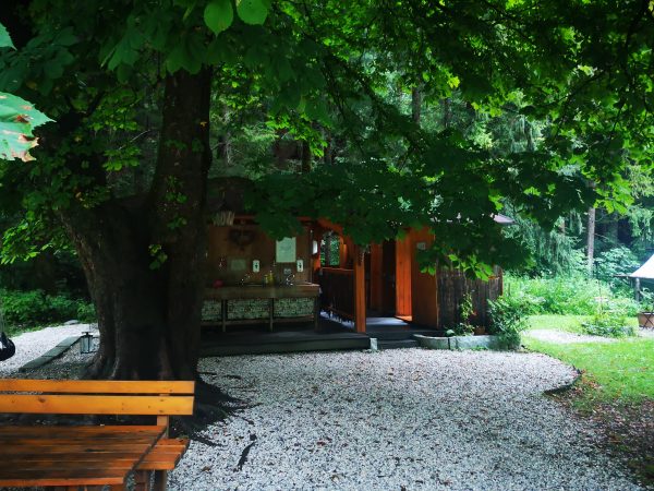 Der Platz selbst besteht aus einer großen Wiese umrahmt von Bäumen, auf der sich jeder einen passenden Platz sucht. Ausgewiesene Pazellen gibt es nicht. Trotz der idyllischen Lage im Wald ist Kranjska Gora mit Einkehr- und Einkaufsmöglichkeiten nur 15 Gehminuten entfernt.