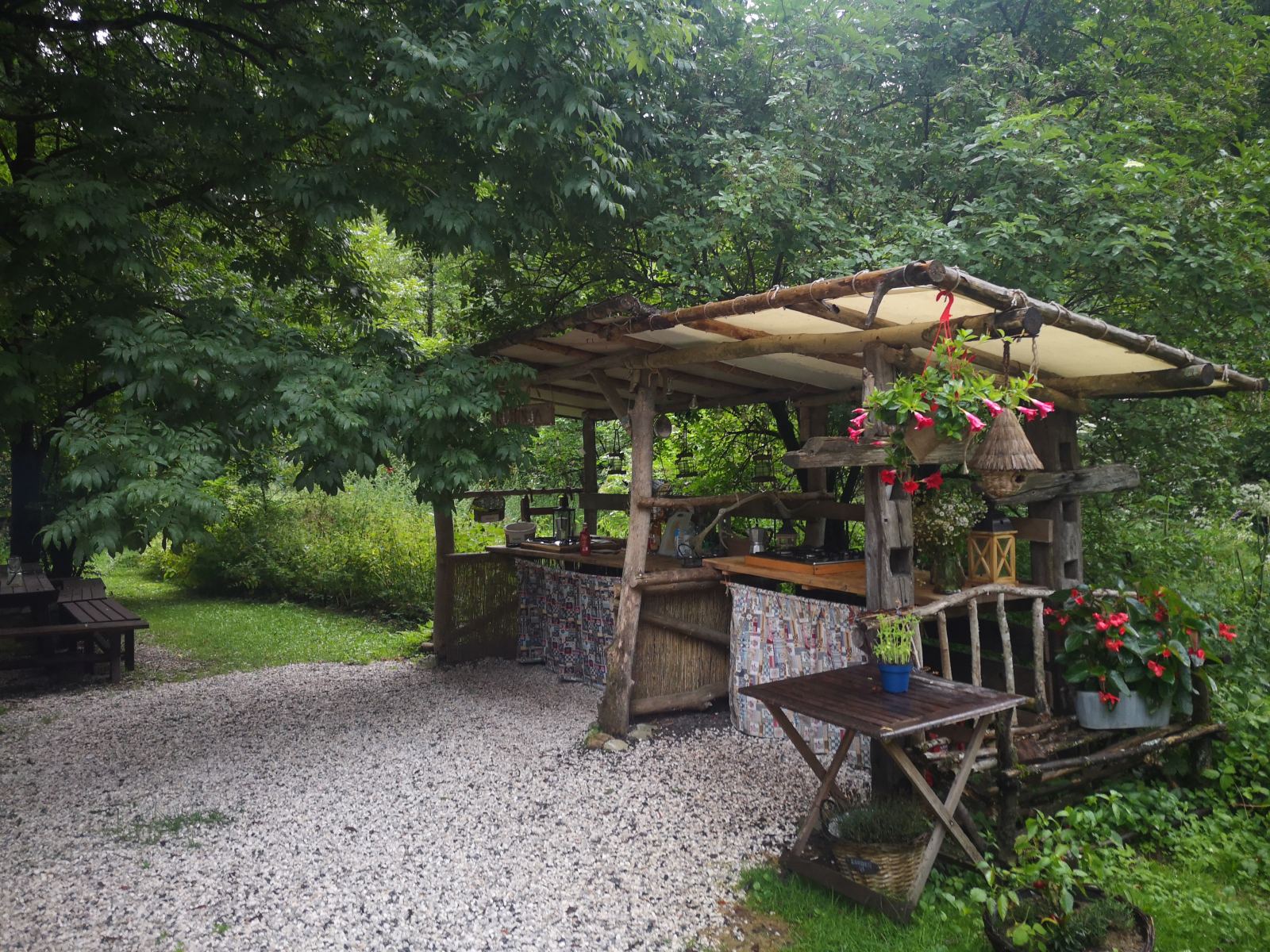 Die freundlichen und hilfsbereiten Betreiber legen großen Wert auf Nachhaltigkeit: Alles ist aus Holz gebaut, das Wasser kommt aus einer eigenen Quelle und der Strom wird mit Sonnenenergie erzeugt.