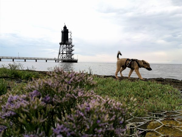 Mehr 1. Reihe geht nicht! Zwischen Deich und Meer liegt der KNAUS Campingpark Dorum an der Wurster Nordseeküste im Nationalpark Niedersächsisches Wattenmeer. Wenn du hier zwischen Cuxhaven und Bremerhaven campierst, hast du den Leuchtturm Obereversand immer im Blick – und kannst ihn gleich zum ersten Gassigang ohne Umwege besuchen gehen. Campinggäste erhalten den Schlüssel für ein kleines Tor im Zaun, der das Campinggelände vom Wiesenstrand abgrenzt. Die Wiese vor dem Campingplatz eignet sich auch wunderbar, um mit deinem Hund den Sonnenuntergang zu genießen, vor dir das Meer, zur Rechten weite Kuhweiden, zur Linken ein liebevoll angelegter Park und der alte Kutterhafen. Wer hier nicht relaxt, kommt wohl nirgendwo runter.