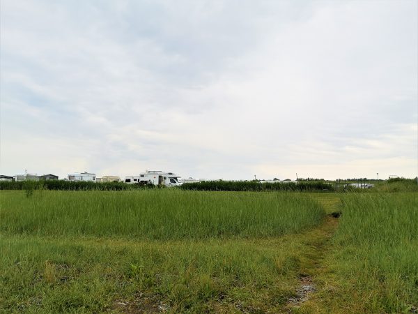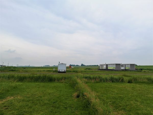 Duschen und WC, ebenfalls topgepflegt, zweckmäßig und modern, sind in Containern untergebracht. Die stehen auf Stelzen. Schließlich liegt der Campingplatz VOR dem Deich, ungeschützt im Falle einer Sturmflut.