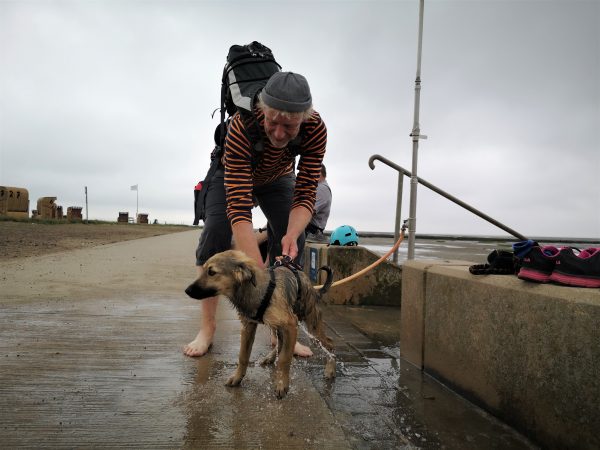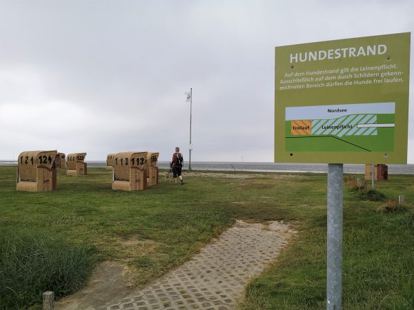 Alles, was du zum Glück und Leben brauchst, ist nur einen Gassigang vom Campingplatz entfernt. Food-Trucks mit Fisch, Kaffee und mehr findest du direkt um die Ecke, ebenso die Kutter, die fangfrische Krabben von Bord verkaufen. Und zum Hundestrand mit Freilaufzone – absolute Seltenheit im Nationalpark – läufst du auch nur ein paar hundert Meter, vorbei am Nationalparkhaus, in dem Hunde ebenfalls willkommen sind. Hinter dem Deich liegen Supermarkt, Bäcker und viele hundefreundliche Cafés und Restaurants.