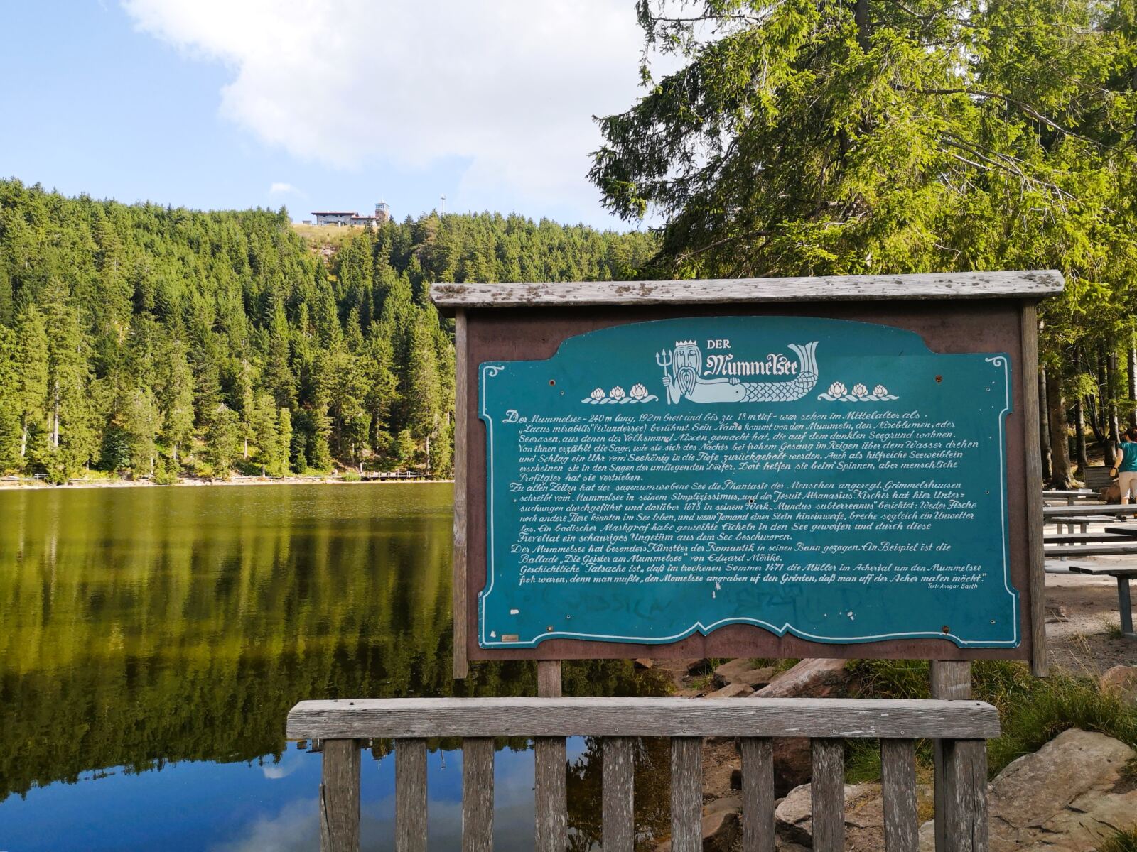 Über dem Mummelsee erhebt sich die Hornisgrinde mit Aussichtsturm.