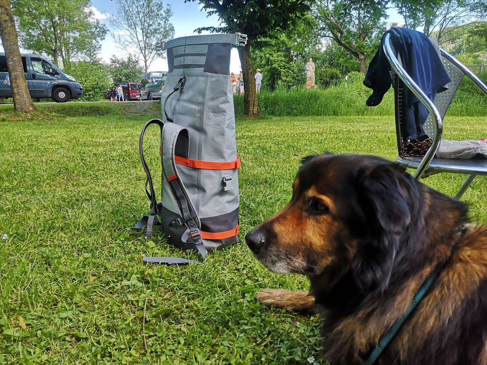 Hinter dem blauen Dry Bag versteckt sich Bruno