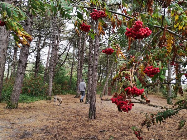 Wem es bei so viel Sand und Meer nach Wald ist, kann den Schobüller Wald bei Husum lässig mit der Schleppleine durchstreifen. Hier haben wir vor allem Einheimische – etliche mit Hund UND Pferd – getroffen.