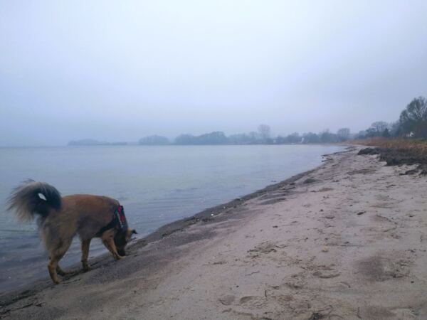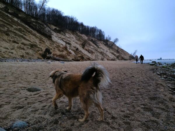 Außerhalb der Hauptsaison zwischen 1. Oktober und 30. April ist es einfach großartig auf Rügen. Denn dann dürfen Hunde an alle Strände und dort in der Regel auch ohne Leine laufen. Ausnahmen sind solche Strände, die unter Naturschutz stehen. Rücksicht auf andere Strandspaziergänger ohne Hunde sollte selbstverständlich sein – und auf solche Strandläufer mit angeleinten Vierbeinern. Was wir auf Usedom beobachtet hatten, haben wir auch auf Rügen wieder gesehen: Offenbar neigen typische Ostsee-Urlauber:innen eher dazu, ihre Hunde auch in solchen Bereichen an die Leine zu nehmen, wo eigentlich Leinenfreiheit herrscht. Und selbst solche, die frei laufen, werden bei Hundebegegnungen (erst einmal) an die Leine genommen. Das haben wir in den Hundefreilaufgebieten an der Nordsee, im deutschen St. Peter-Ording genauso wie an den holländischen Stränden, anders erlebt.