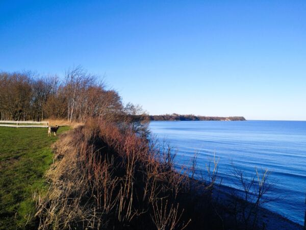 Vom Naturstrand des pittoresken Fischerdörfchens Vitt bietet sich der beste Blick auf Kap Arkona. Außerhalb der Badesaison sind am tiefen Strand nur wenige Menschen unterwegs. Und je weiter man Richtung Kap läuft, desto leerer wird es. Wunderschön für einen kleinen Strandspaziergang mit Hund vor allem morgens und abends.
