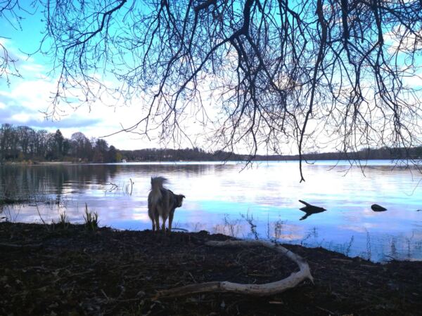 Noch schöner, als die Bilder auf der Website hoffen ließen. Tolle Lage, supergepflegte Waschräume. Wir standen in der 2. Reihe mit Blick auf den See. Und kurz nach unserer Ankunft kam auch noch die Sonne raus. Ein Traum. Wir nutzen die Regenpause für einen schönen Spaziergang mit Amos an den Ufern von Templiner See und Petzinsee. Amos lief meist frei und sprang immer wieder ins Wasser.