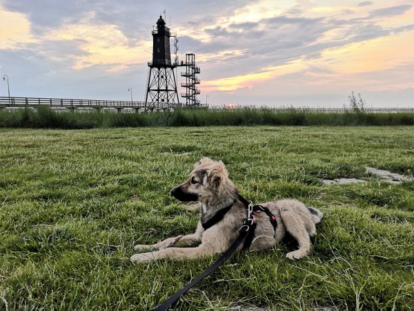 Die Atmosphäre ist tiefenentspannt, die Hundefreundlichkeit groß. Am Zugang zum Badestrand gibt’s Leckerli am Kassenhäuschen, ebenso im Nationalparkhaus, dessen Ausstellung zum Watt du auch mit Hund besichtigen kannst (Eintritt für Zwei- und Vierbeiner frei). Natürlich. Hier gibt’s auch maritim gestylte Hundeleinen und jede Menge Infobroschüren für Hundebesitzer. Die sind nicht mit erhobenem Zeigefinger geschrieben, sondern setzen auf Erläuterungen und Verständnis. Auch in den vielen Restaurants und Cafés sind Hunde meist herzlich willkommen, oft auch im Innenraum.  Die Auswahl an hundefreundlichen Unterkünften ist groß, unsere liebste ist der Knaus Campingpark vor dem Deich direkt an Meer und Leuchtturm (extrem viel besser, als die Google-Bewertung vermuten lässt).