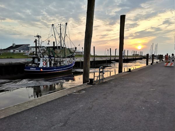 Auch im Nationalpark Niedersächsisches Wattenmeer gibt es einen Ort, der alles dafür tut, dass sich Zwei- und Vierbeiner hier wohlfühlen: Dorum-Neufeld an der Wurster Nordseeküste zwischen Cuxhaven und Bremerhaven. Das beginnt mit dem Hundestrand. Der ist vergleichsweise weitläufig und bietet – eine absolute Seltenheit in dieser Ecke – eine Freilaufzone. Wer mag, kann sich hier auch einen Strandkorb mieten, den Vierbeinern beim Toben zusehen und locker den ganzen Tag verbringen.  Wenn der Magen knurrt, schlenderst du einfach zu den vielen Strandbuden, wo es Fisch satt und natürlich auch anderes gibt. Oder du läufst die wenigen hundert Meter vor bis zum Kutterhafen. Hier gibt’s Krabben direkt von Bord. Zum selber Puhlen, versteht sich.