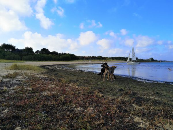 Deutlich mehr Freiheiten findest du mit deinem Hund auf der Wattseite der Insel. Die Marschen stehen bei vielen hundelosen Gästen nicht so hoch im Kurs. Und in den wenigen, aber wunderschönen kleinen Buchten kann dein Hund am Spülsaum an der Schleppleine vielerorts – auch mit anderen Hunden – toben, ohne schiefe Blicke zu ernten. - Unbedingt Schleppleine mitnehmen!