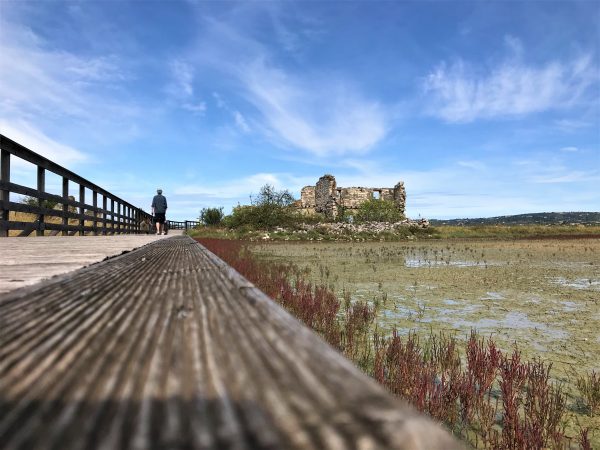 Unsere zweite Lieblingstour bringt dich in das Niemandsland zwischen slowenischem und kroatischem Grenzposten in eine bizarre Welt: die Salinen von Secovlje. Das 750 ha große Gelände, heute ein Naturpark, trennt ein Kanal in zwei Teile. Im – von Koper aus gesehen – vorderen Teil Lera sind Hunde nicht gestattet, im hinteren Teil Fontanigge an der Leine sehr wohl. Nach der Hauptsaison drückt der freundliche Mitarbeiter an der Schranke auch mal ein Auge zu, und Besucher dürfen mit ihrem Vierbeiner den eigentlich verbotenen Bohlenweg nutzen.