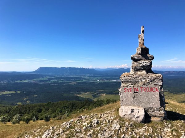 Unsere Lieblingswanderung im Naturpark Pivka führt vorbei an den Sickerseen und hinauf auf den Sv. Trojica. Vom baumlosen Gipfel kannst du bei gutem Wetter weit über die Adria und nach Kroatien sehen.
