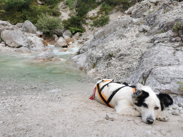 Am Westrand des Triglav-Nationalparks liegt Bovec im Tal der Soča, die für ihre fast schon überirdisches Türkis berühmt ist. Das Örtchen mit seinen gut 1.600 Einwohner ist ein Outdoor-Paradies, das vom Tourismus lebt. Neben Hotels und Fewos findest du hier zahlreiche Campingplätze, auf denen Hunde willkommen sind. Unser Lieblingsplatz, Camp Liza, liegt etwas außerhalb des Orts am Mündungsbereich der Koritnica in die Soča, direkt am Knotenpunkt zahlreicher Wanderwege. Total entspannt mit Hunden.