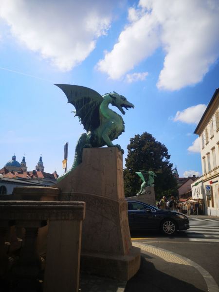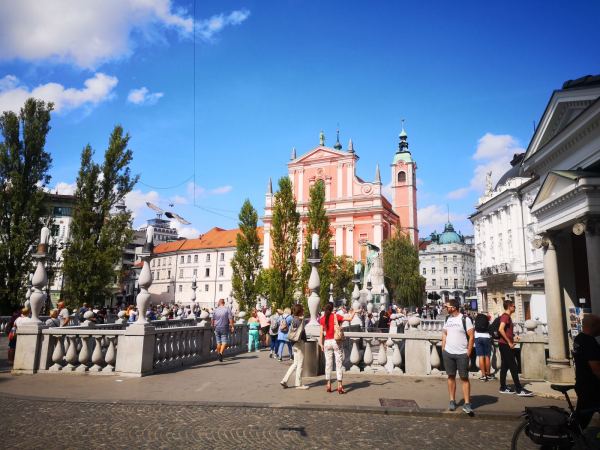 Ljubljana, die mit knapp 300.000 Einwohner relativ kleine Hauptstadt Sloweniens, ist definitiv einen Zwischenstopp wert. Die Atmosphäre ist entspannt-gemütlich. Viele Bereiche der Innenstadt sind Fußgängerzone und die Stadt ist – wie ganz Slowenien – sehr hundefreundlich. Es gibt öffentliche Stellen zum Napf auffüllen, vor vielen Geschäften stehen ebenfalls Trinkschüsseln und (zumindest gefühlt) gibt es hier weniger Menschen ohne Hund als mit.