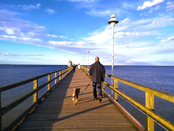 Auf Usedom gibt es mit Hund so viel zu entdecken. Natürlich gehört ein Bummel über die Promenaden der Kaiserbäder Ahlbeck, Heringsdorf und Bansin dazu.