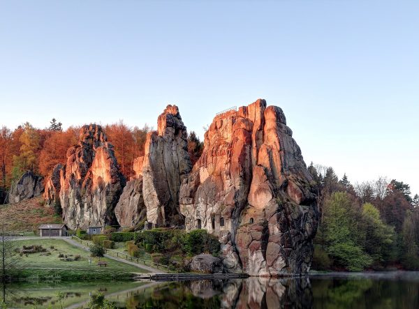 Das Hermannsdenkmal, das an die Varusschlacht erinnert, ist ein kultureller und historischer Höhepunkt. Die Externsteine, eine beeindruckende Felsformation mit mystischer Atmosphäre, ziehen Wanderer aus der ganzen Welt an. Hier können wir mit unserem Hund eine einzigartige Kulisse erleben.