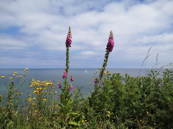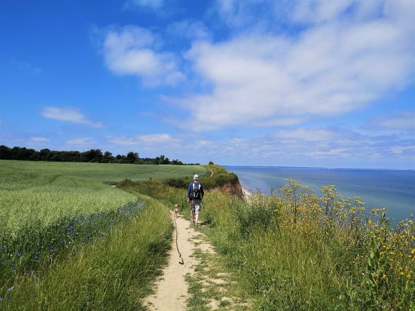 Vom Campingplatz kann man zum Hemmelmarker See laufen und direkt weiter nach Eckernförde. In die Gegenrichtung bringt uns ein Wanderweg zwischen Meer und Feldern zum berühmten Campingplatz „Camp Langholz“.