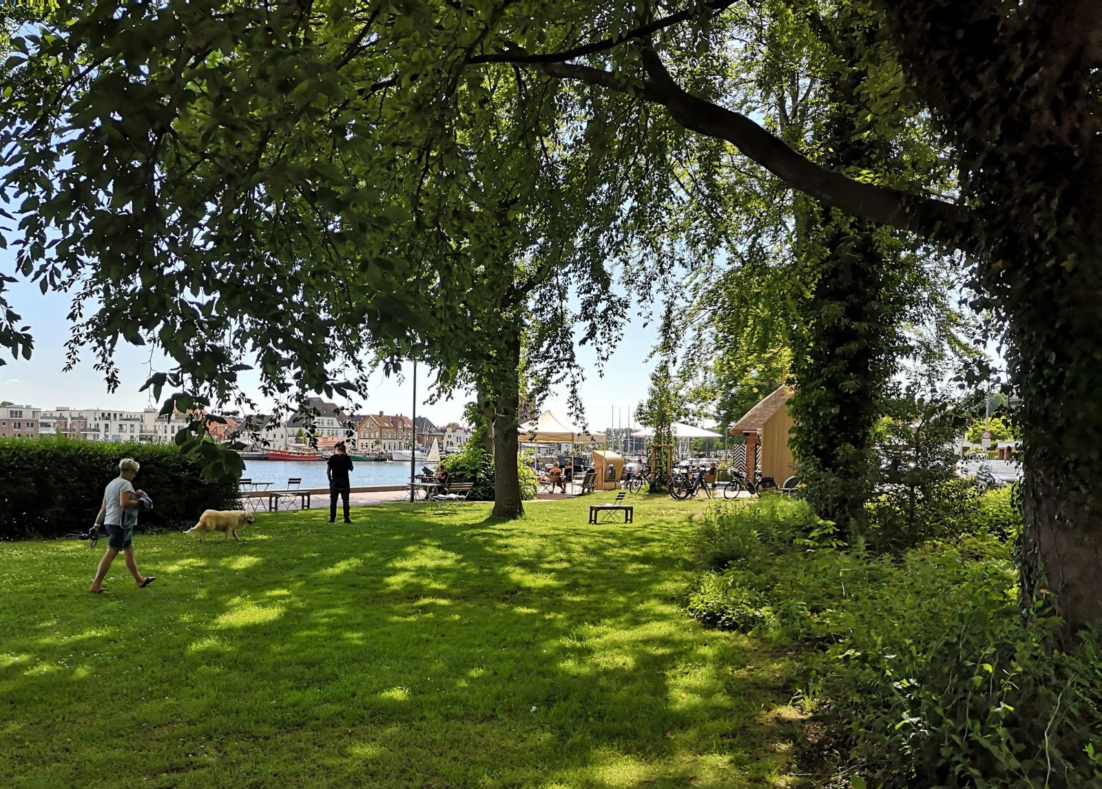 In den Sommermonaten konzentriert sich das Leben auf die Strände – und auf die beiden quirligen Hafenstädte Eckernförde und Kappeln an der Schlei mit historischen Fassaden und modernem Angebot. Hunde gehören hier wie selbstverständlich zum Stadtbild. Entsprechend lässig gehen Geschäftsleute und Gastronomen damit um. Und an jeder Ecke gibt es Tütenspender.